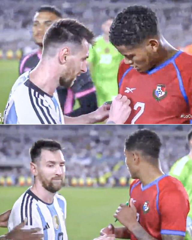 比赛结束后,巴拿马球员马上变身追星族,纷纷找梅西合影和签名。